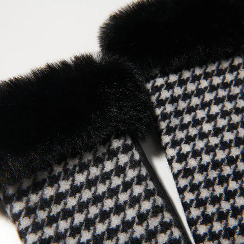 These cozy lambswool mittens are designed to keep hands warm while offering a soft, elevated look. The faux fur cuff adds a touch of texture and winter charm, making them a stylish cold-weather essential.